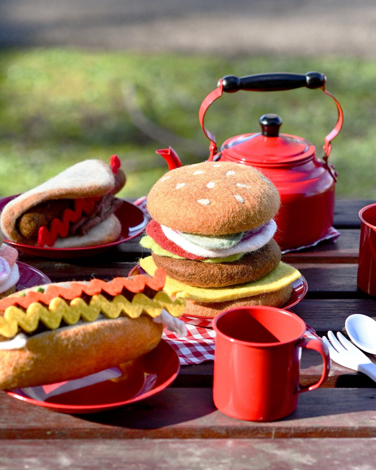 Felt Hot Dog Set - deconstructed for endless pretend play. Unleash your child's creativity with our Felt Hot Dog Set, designed for interactive and imaginative play.